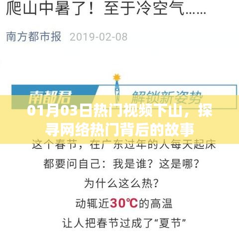 随着互联网的普及,短视频已成为大众获取信息、娱乐消遣的重要途径,而在每个月的特定日期,总有一些视频因其独特的创意、内容或明星效应脱颖而出,成为热门话题,本文将以一月份第三个工作日的热门视频《下山》为切入点,探讨其背后的故事以及所引发的社会反响。