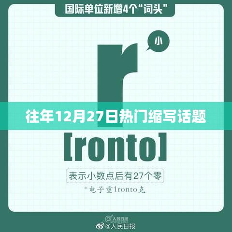 往年12月27日的热门缩写话题涵盖了娱乐、科技、政治、社会等各个领域,这些话题引发了人们的广泛关注和讨论,反映了人们对不同领域的兴趣和关注点,随着社会的不断发展,这些热门话题也将不断发生变化,但无论如何,它们都是人们生活中不可或缺的一部分。