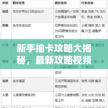 1、观看最新攻略视频:通过搜索“新手抽卡最新攻略视频”,你可以找到许多经验丰富的玩家分享的抽卡技巧,这些视频将为你提供宝贵的建议,助你在抽卡过程中少走弯路。